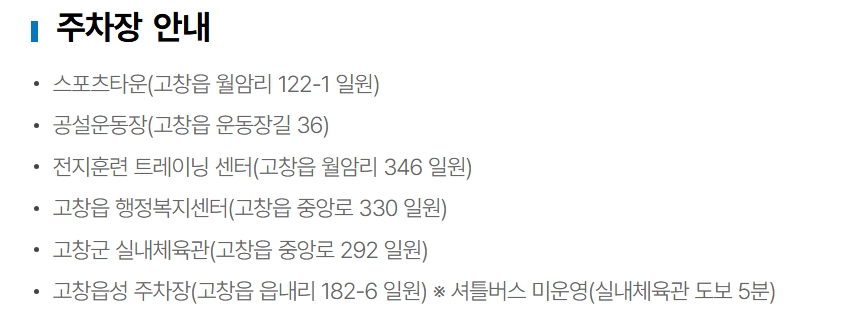 | 셔틀버스 | 고창 주요 지점 ↔ 축제장 간 셔틀버스 무료 운행 |