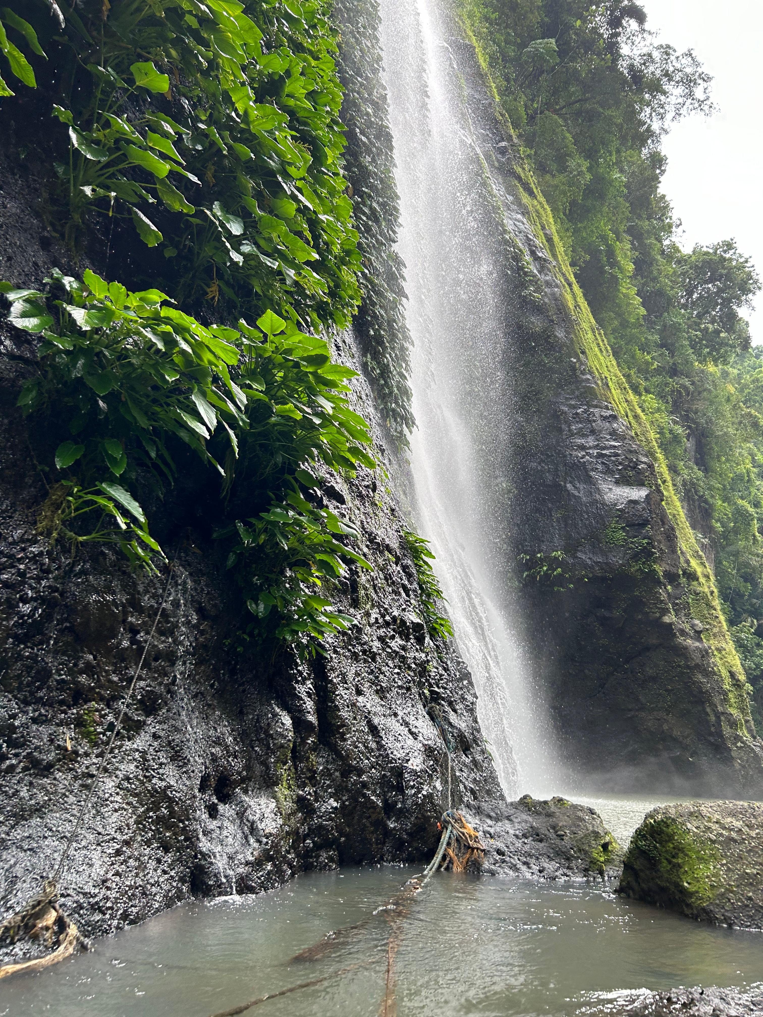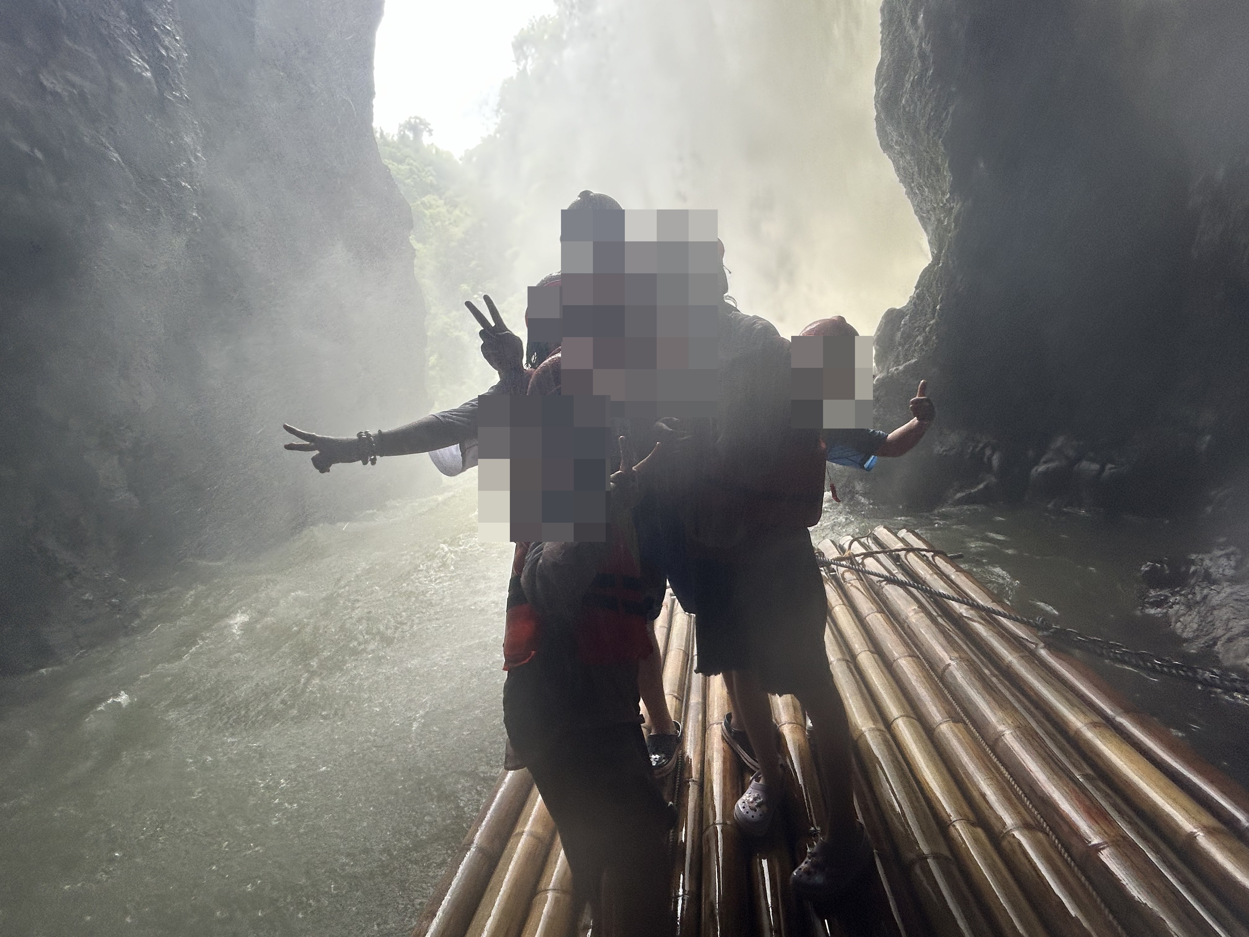 팍상한폭포에 도착해 뗏목에 줄을달아 폭포에 들어가 물을 3-4분